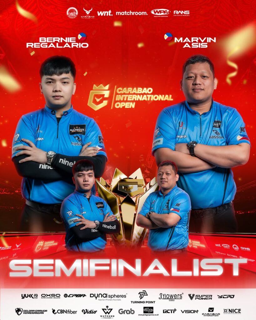 Sementara itu, babak semifinal turut diramaikan oleh dua pemain kuat asal Filipina, yakni Bernie Regalario dan Marvin Asis. Keduanya dikenal sebagai pemain berpengalaman dengan karakter permainan disiplin khas Filipina yang kuat dalam kontrol cue ball dan mental bertanding.