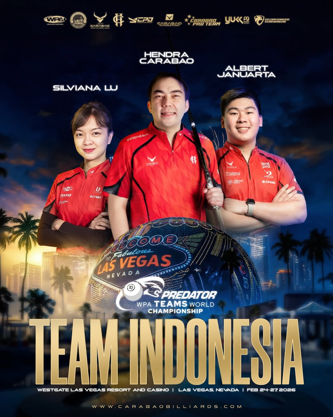 “Las Vegas, we are ready. Team Indonesia Hendra Carabao, Albert Januarta, and Silviana Lu are set to compete at the WPA World Teams Championship. It’s time to make Indonesia proud.”