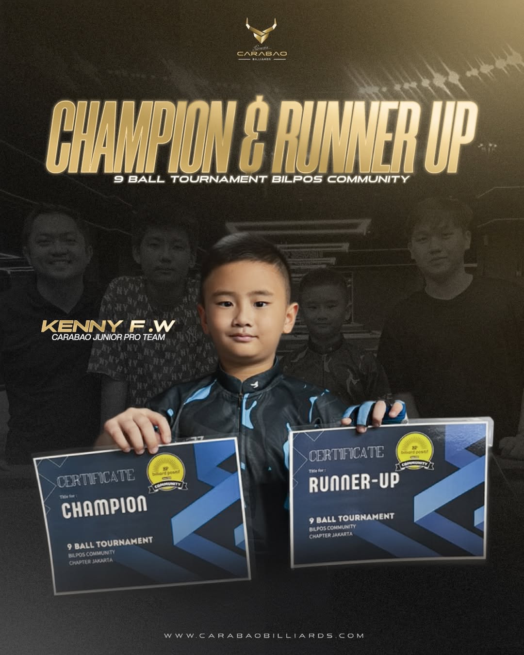 Performa gemilang kembali ditunjukkan oleh pemain muda Carabao Junior Pro Team, Kenny F.W, yang sukses mencatatkan prestasi membanggakan di ajang 9 Ball Tournament Bilpos Community Chapter Jakarta.