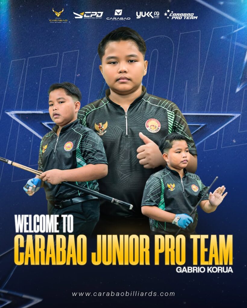 November 15, 2025 Gebrio Korua, “Bocil Billiards” Asal Manado Resmi Bergabung dengan Carabao Junior Pro Team